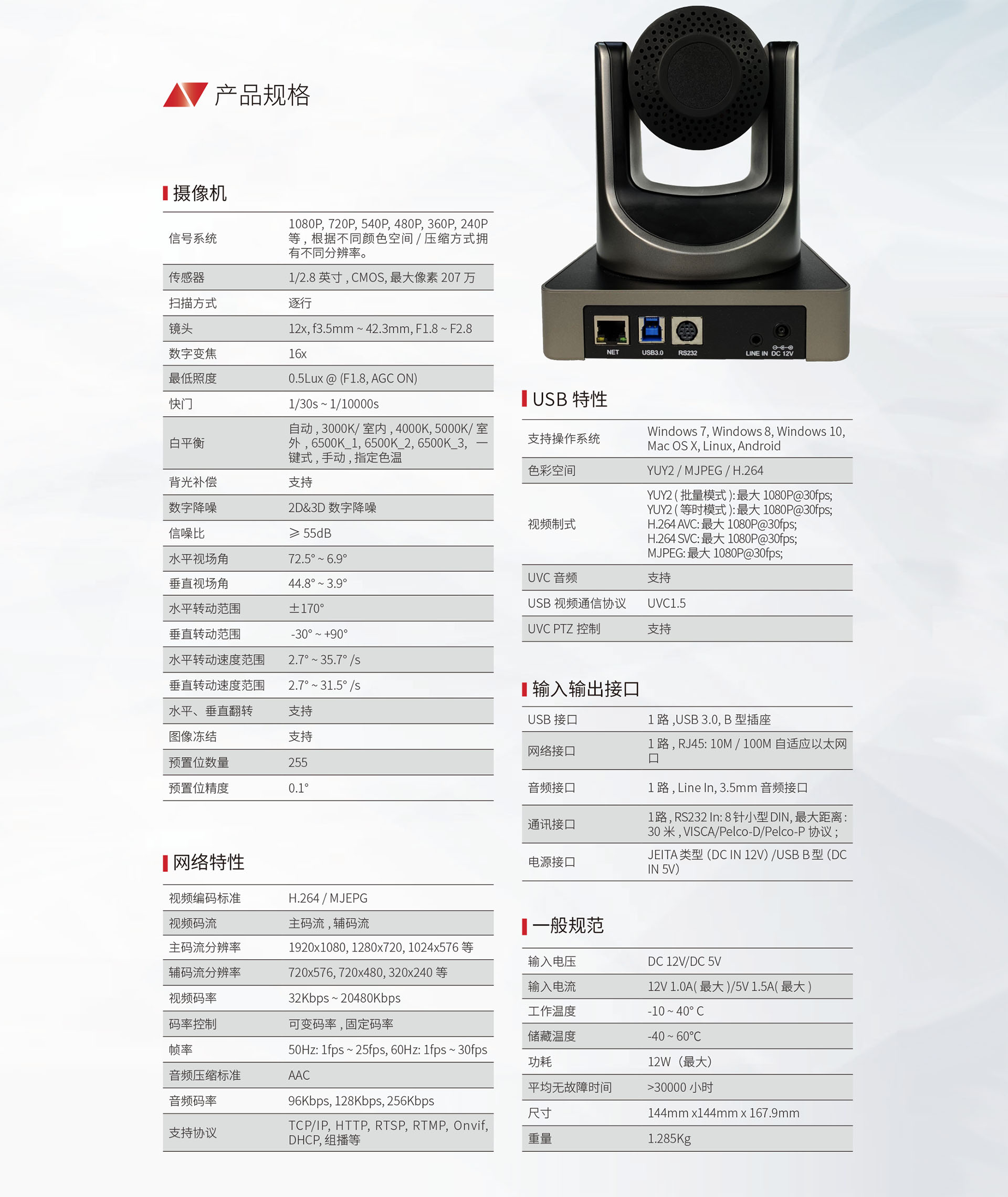 全功能 USB 接口,兼容 USB3.0、USB2.0,支持音頻,支持編碼輸出,支持 UVC 1.1~1.5 協(xié)議。